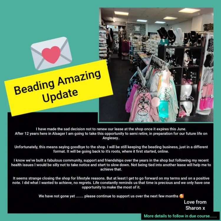 Alsager's cherished Beading Amazing is bidding farewell later this year as owner announces retirement plan