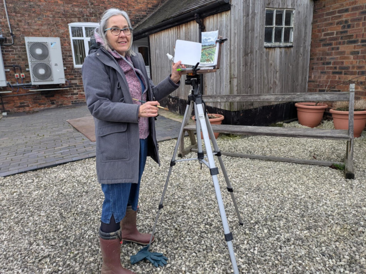 Sarah enjoys painting outside and her new 'toy' is a tripod which will enable her to paint in plein air, capturing local scenes.