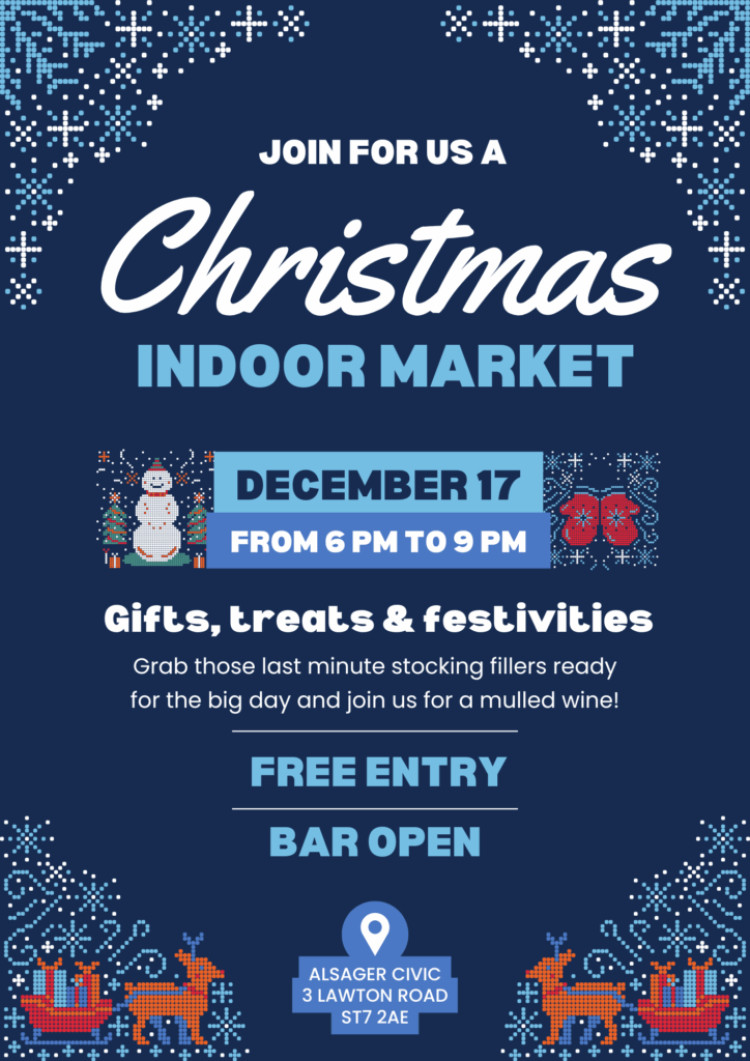 Do you like looking for fun, unusual presents or maybe some stocking fillers? Alsager Civic is holding a Christmas Indoor Market on Wednesday, December 17th from 6 pm until 9 pm.