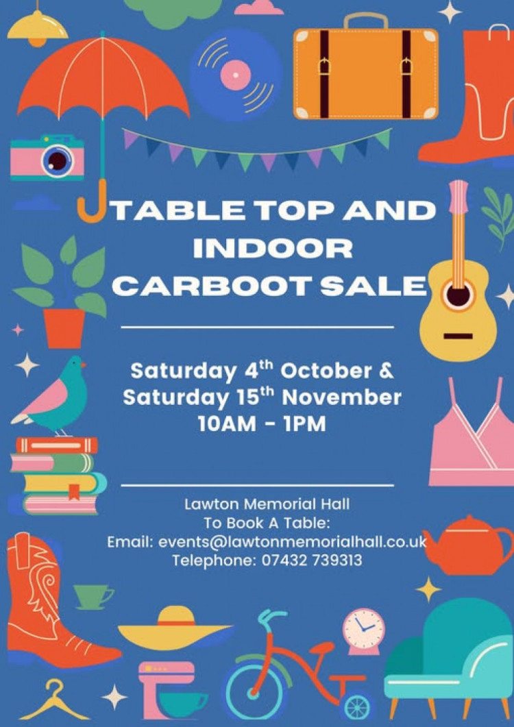 In Church Lawton, there's an indoor car boot sale at the Lawton Memorial Hall from 10 am until 1 pm.
