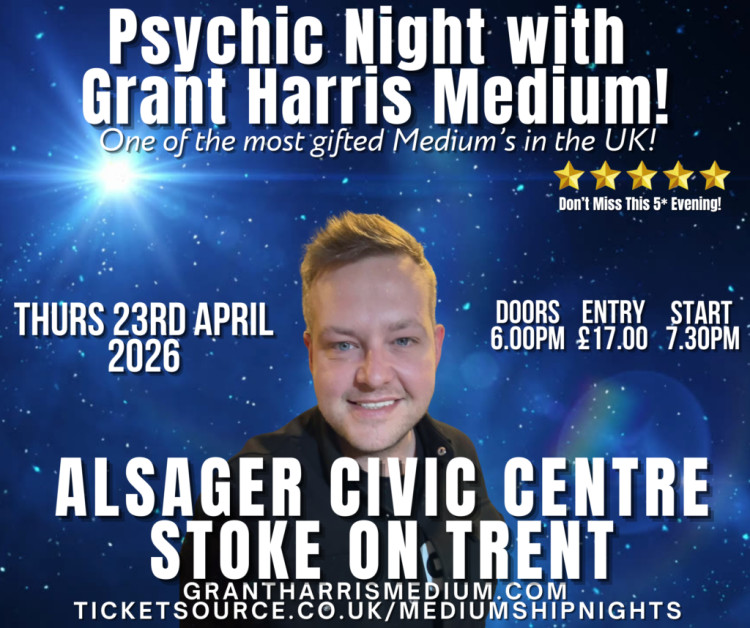 Alsager Civic has an evening of mediumship with Grant Harris – returning for another sell out show!Doors open at 6 pm and the show starts at 7 pm. Tickets are £17 - further details here