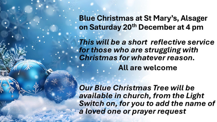 St Mary's Church has its 'Blue Christmas' - a reflective service at 4 pm for anyone struggling with Christmas for whatever reason. All welcome.