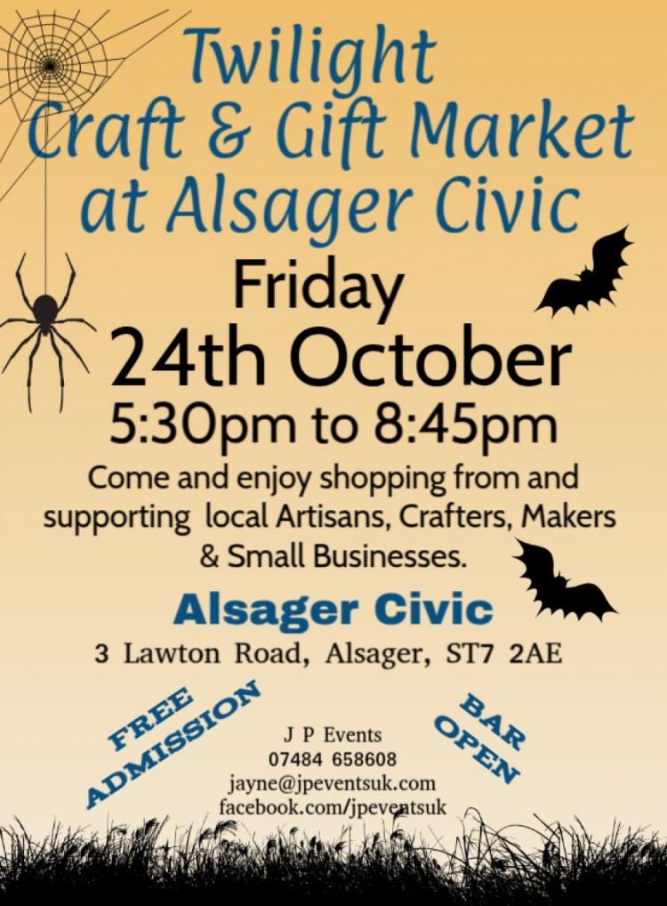 Do you enjoy craft markets? Alsager Civic has its 'Twilight Craft & Gift Market' on from 5.30 pm until 8.45 pm with crafters, makers and small businesses.