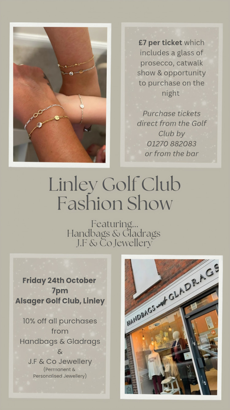 Do you enjoy fashion? Linley Golf Club has a fashion show featuring Handbags and Gladrags from Sandbach. Details for tickets are on the poster below.