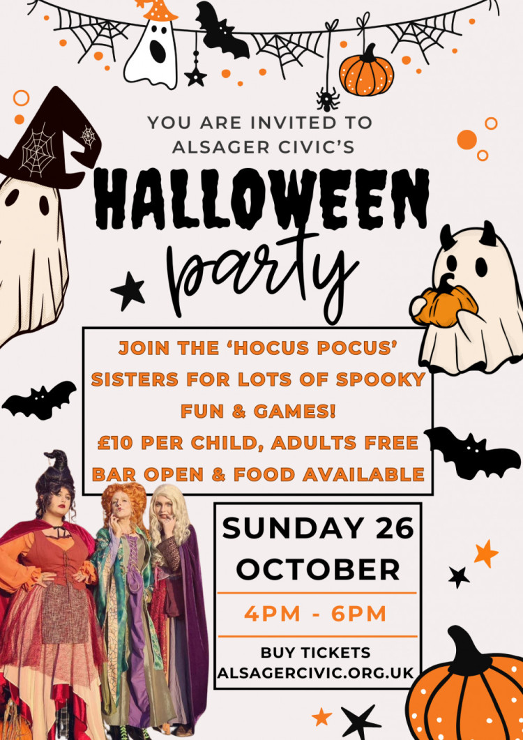 It's October half-term next week and here's the perfect start to the holiday - a Halloween Party at Alsager Civic. Children are £10 and adults are free. Go along and enjoy some spooky fun from 4 pm until 6 pm.