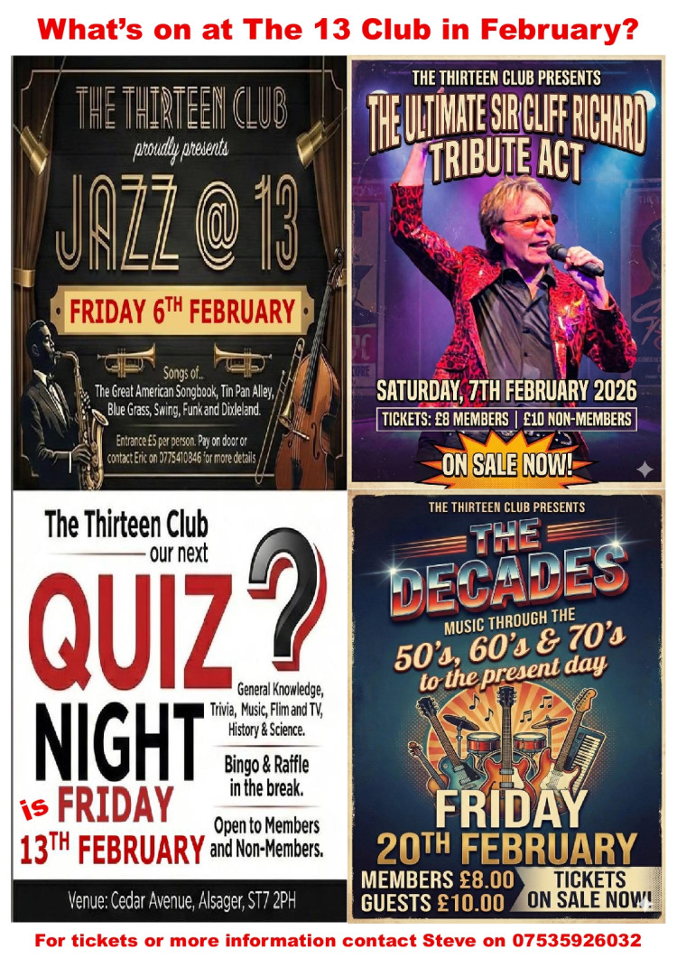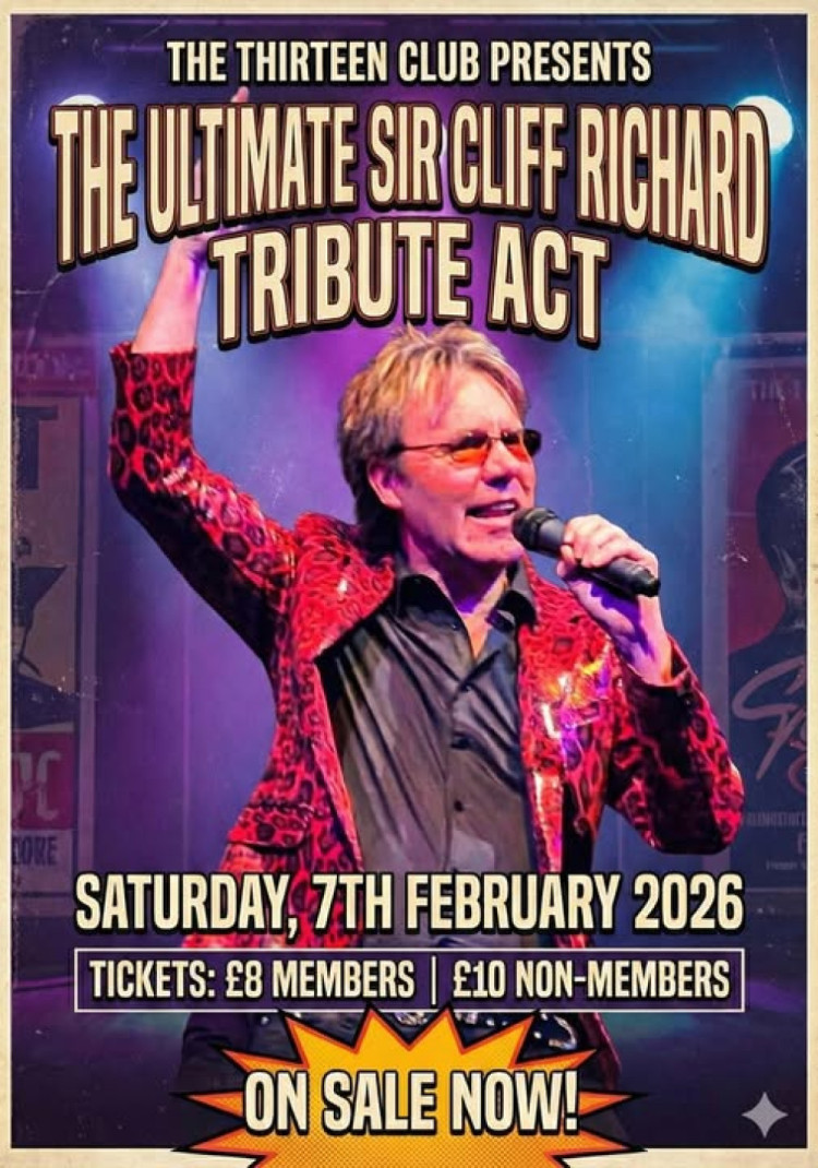 Cliff Richard fans will be zoning in on The Thirteen Club where there's a Cliff Richard tribute night. Tickets are £8 for members and £10 for non-members.