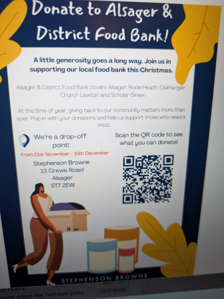 Drop off your donations at Stephenson Browne's Alsager office and they will pass them on to Alsager & District Food Bank.