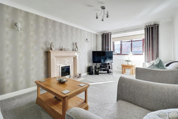 + Bay Window. Fitted carpet, UPVC double glazed bay window, ceiling light point, two wall light points, two radiators, feature fireplace.