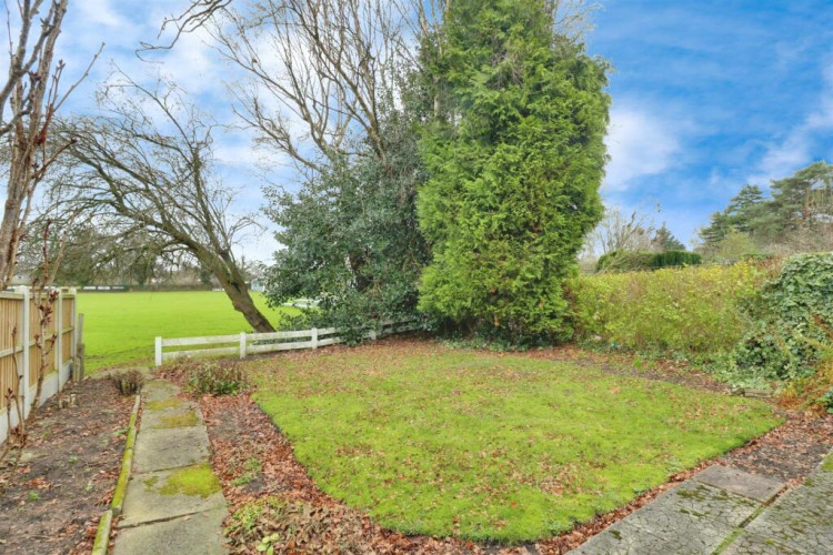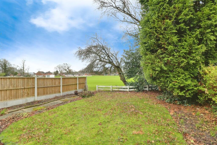 The delightful rear garden features patio and lawned areas with mature shrubs, and opens onto the grounds of Alsager Cricket Club.