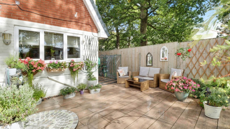 To the front of the property is a full-width tarmacadam driveway providing ample off-road parking for multiple vehicles, whilst the delightful rear garden features porcelain paved patio areas with two seating terraces, and a lawn with a slate border and mature shrubs.