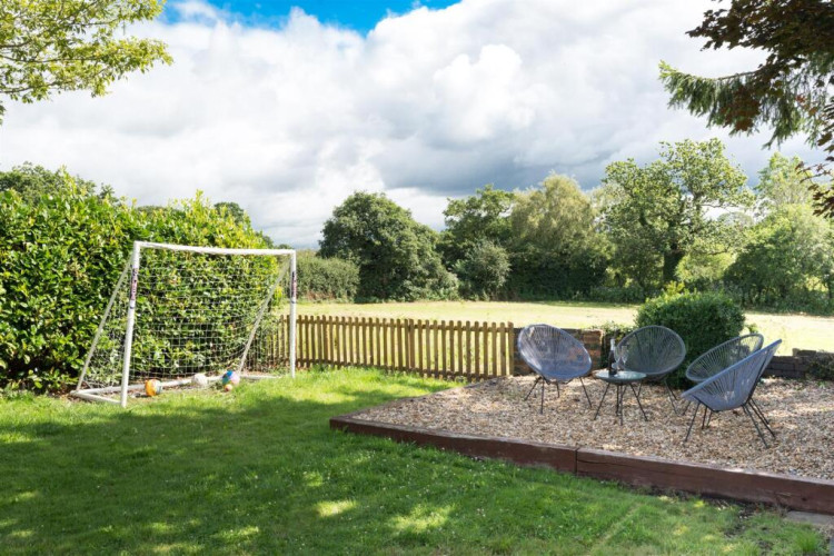 The rear garden boasts a patio ideal for seating, along with a sizeable lawn and picket fence allowing full exposure of the field views behind.