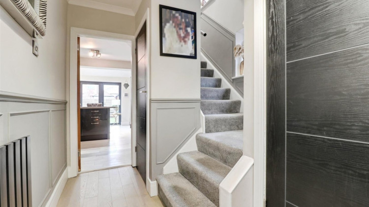 Upstairs, there are three bedrooms and the family bathroom, which comprises a W/C, wash basin, bath and separate walk-in shower.