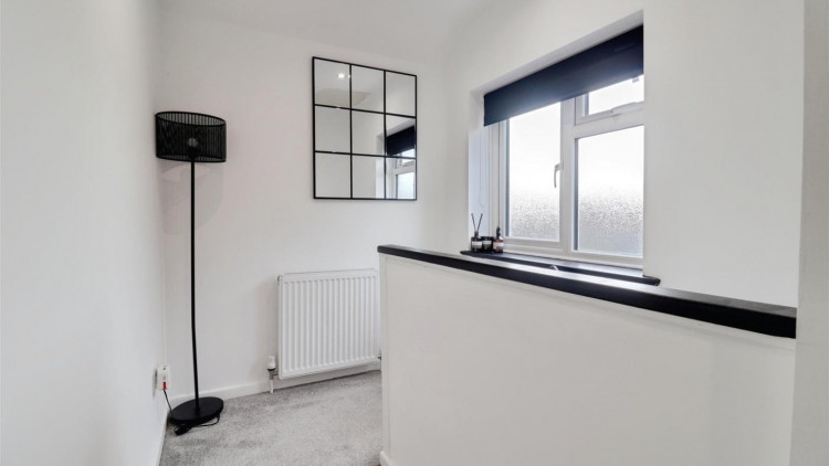 Double glazed frosted window to the elevation. Single panel radiator. Loft access point. Storage cupboard housing the wall mounted gas central heating boiler.